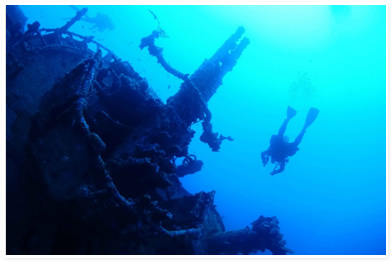 在第二次世界大戰時期1945年沈沒了的美軍驅逐艦。位於沖繩本島北部的古宇利島近海。於2000年被當地漁民發現。船長106.2 m, 炮台都保持著完好的狀態, 非常壯觀, 是十分值得到訪的潛點。